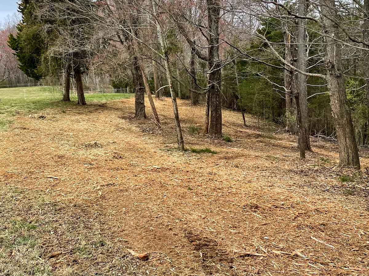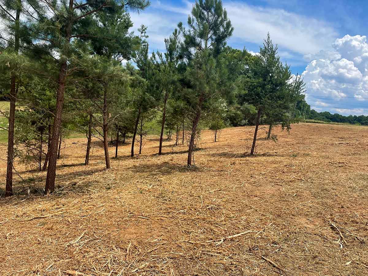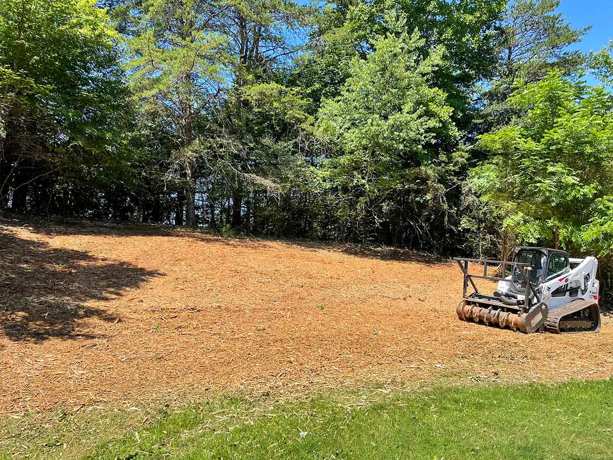 Traditional land clearing methods are invasive and increase the risk of erosion by uprooting trees, destroying stumps and roots, and damaging the soil. Not with us. We mulch the vegetation to preserve the soil structure, which can then be left on the ground as a natural fertilizer and a built-in erosion barrier. Over time, grass can naturally grow and be easily maintained with mowing.